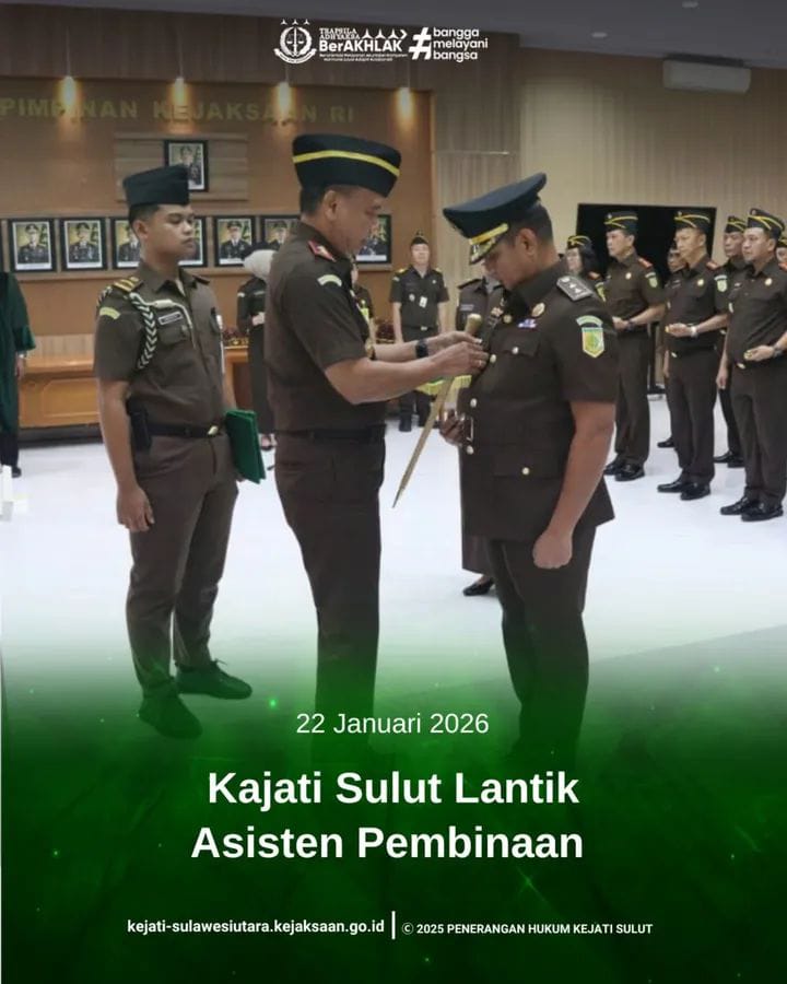 MANADO, Lintaspendidikannews.com — Kepala Kejaksaan Tinggi Sulawesi Utara (Kejati Sulut) Jacob Hendrik Pattipeilohy, S.H., M.H. secara resmi melantik Fahri, S.H., M.H. sebagai Asisten Pembinaan Kejaksaan Tinggi Sulawesi Utara. Pelantikan tersebut merupakan bagian dari mekanisme organisasi Kejaksaan Republik Indonesia dalam rangka penguatan tata kelola internal serta optimalisasi pelaksanaan tugas kelembagaan.