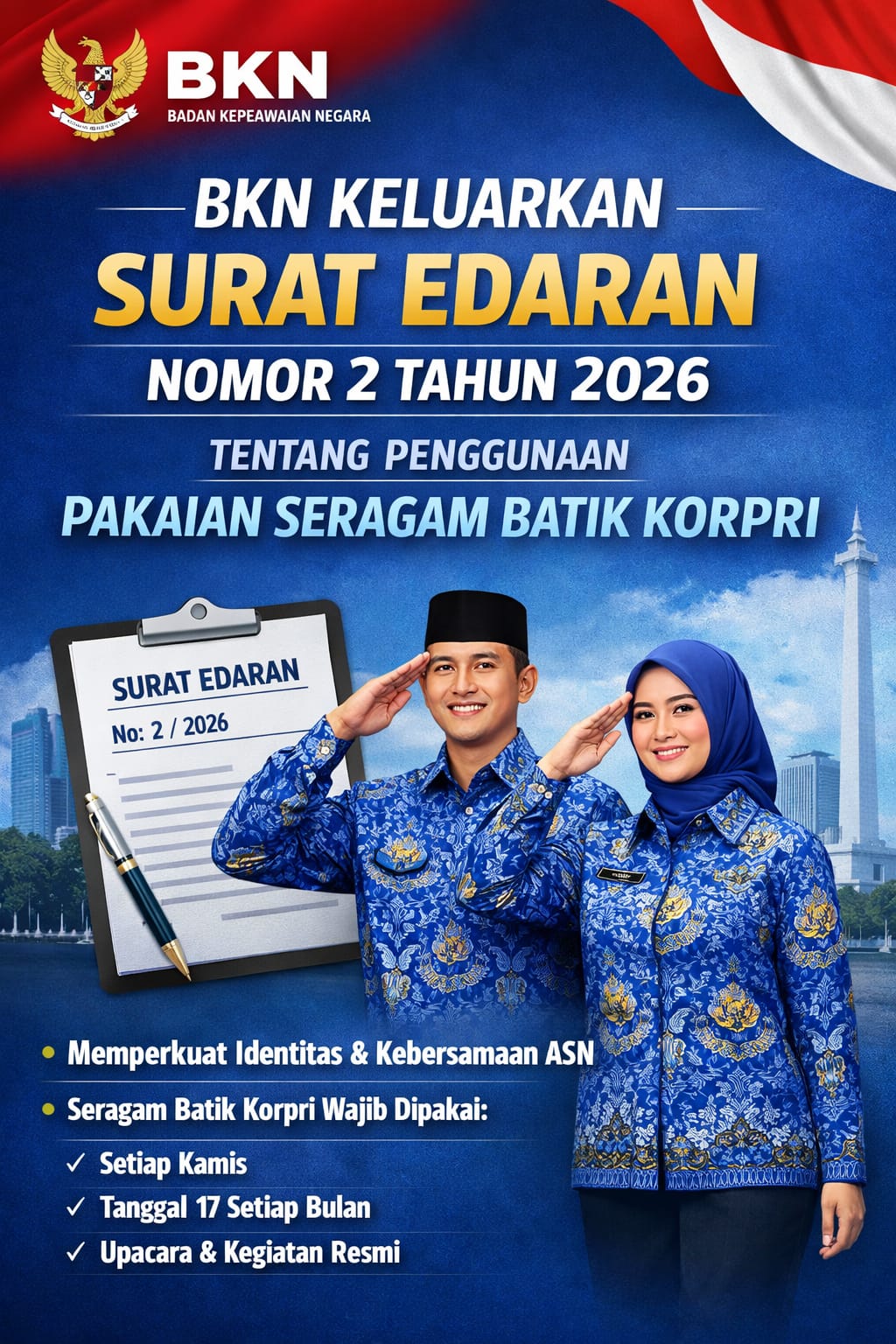 BKN Terbitkan Surat Edaran Nomor 2 Tahun 2026 tentang Penggunaan Pakaian Seragam Batik Korpri