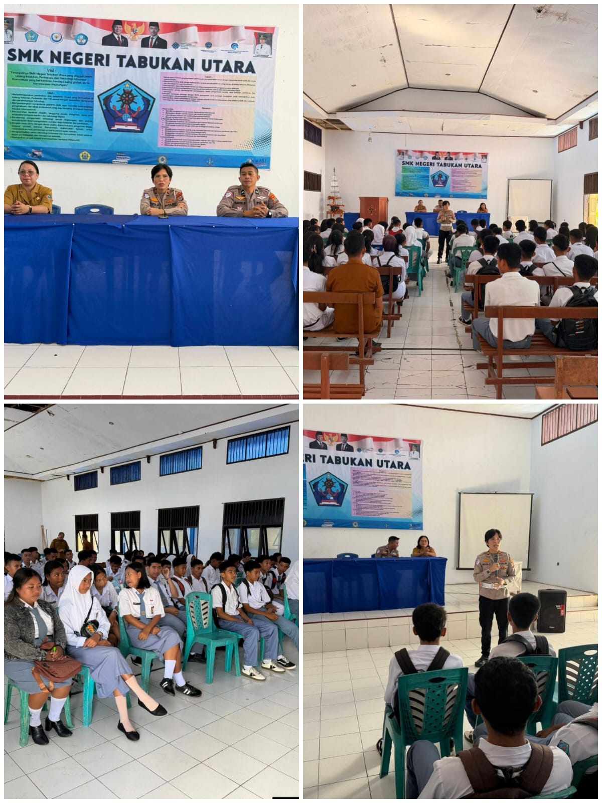 Turut hadir dalam kegiatan tersebut Wakil Kepala Sekolah Bidang Humas dan Sarana Prasarana Metty Harindah, S.Si, Wakil Kepala Sekolah Bidang Kurikulum dan Kesiswaan Margaretha Janis, S.Pd, Kanit Kamsel Satlantas Polres Kepulauan Sangihe Aipda David Silangen, serta para guru, staf dan siswa-siswi SMK Negeri Tabukan Utara.